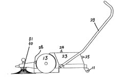 | 40 | 實用新型 | 手推式掃地車 | 一種手推式掃地車,它屬于一種掃地工具,尤其是一種人力手推、機械運動對地面進(jìn)行清掃的手推式掃地車。本實用新型旨在解決現(xiàn)有清掃工具各自存在的適用范圍窄、成本昂貴、耗費人力、清掃效果差的缺陷,其技術(shù)方案是:該掃地車包括機殼(28)、扶手(29)、垃圾存儲箱(23)、主動滾輪(13)、滾刷(14、15),滾刷(14、15)位于機殼(28)內(nèi),滾刷軸與位于其兩側(cè)的主動滾輪(13) 軸齒連接,主動滾輪(13)的轉(zhuǎn)動帶動滾刷(14、15)運轉(zhuǎn),垃圾存儲箱(23)位于滾刷(15)后方,為增強清掃效果在機殼前方還設(shè)置有一對向內(nèi)旋轉(zhuǎn)的盤刷。 | ![]() |