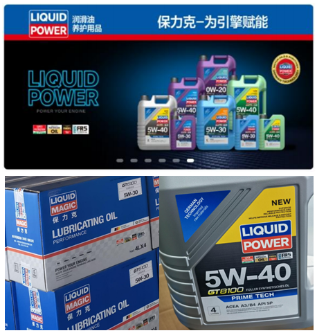 The defendant, LIQUID POWER Company, produces and sells lubricating oils, engine oils, and other products with the logos " ", " " and " ", and markets them through WeChat Mini Programs, offline partner stores, and other channels (as shown in the following images).
