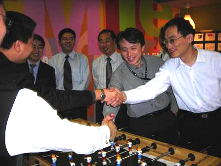 第一屆“小飛俠”杯集佳桌上足球?qū)官愰_(kāi)幕式于2007年1月4日在集佳總部七樓茶水間隆重舉行。集佳副所長(zhǎng)李雷作為本次大賽總顧問(wèn),參加了開(kāi)幕式并為揭幕戰(zhàn)開(kāi)球。