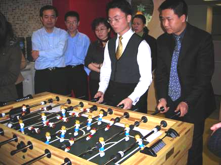 在大家積極配合和充分準(zhǔn)備下,本次大賽完美開(kāi)局。感謝公司領(lǐng)導(dǎo),感謝每一位關(guān)心支持本次大賽的伙伴們。在剛剛走過(guò)的2006年,集佳又取得了新的成績(jī),有了更大的發(fā)展,這離不開(kāi)廣大員工的辛勤工作。公司領(lǐng)導(dǎo)為了減輕員工的工作壓力,增加了桌上足球運(yùn)動(dòng)設(shè)備,這為廣大員工在辛勤工作的同時(shí)提供了很好的放松運(yùn)動(dòng),勞逸結(jié)合。相信隨著本次大賽的成功舉辦,會(huì)有越來(lái)越多的同事參與到這個(gè)項(xiàng)目中來(lái),也會(huì)有越來(lái)越多的同事為集佳貢獻(xiàn)更大的力量。