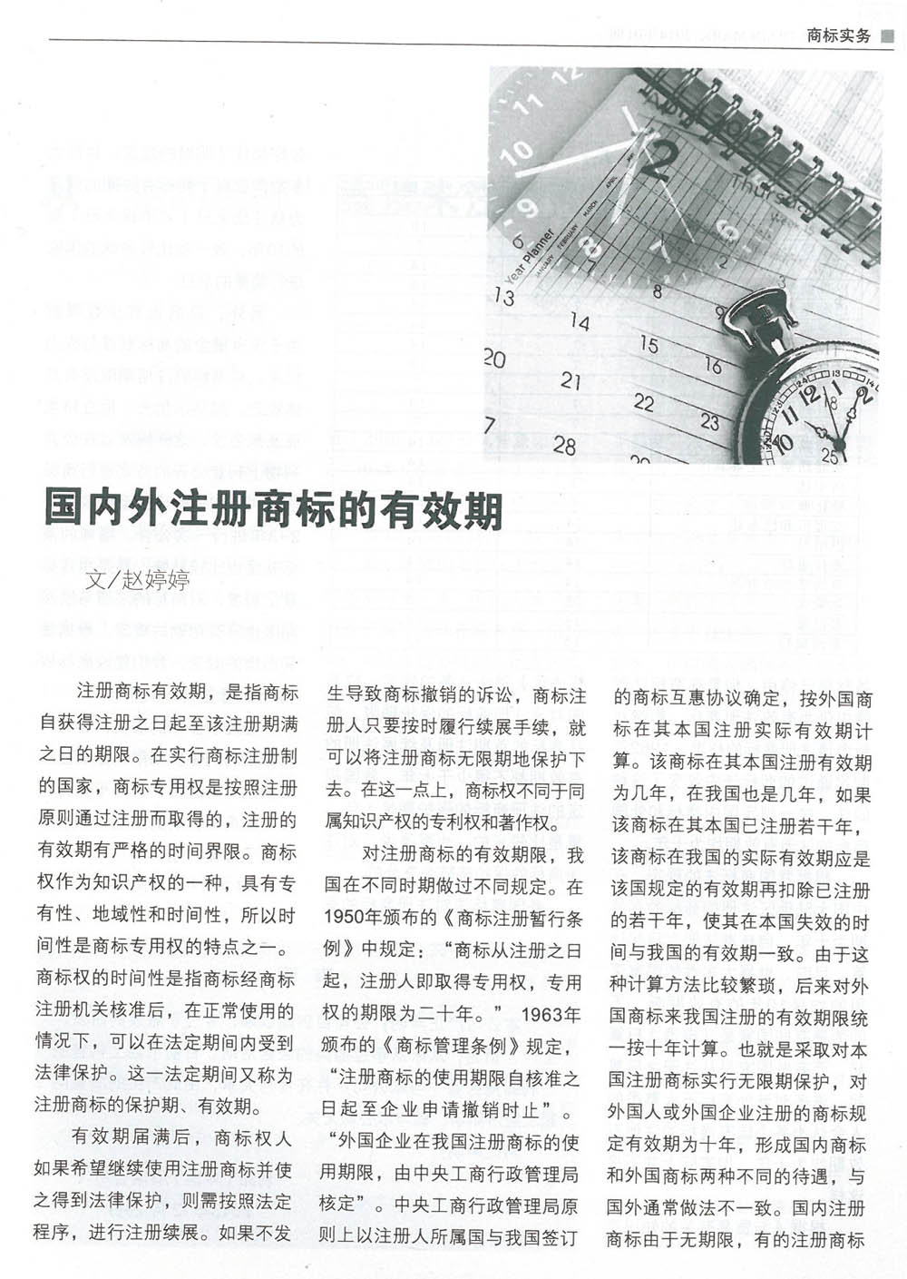 集佳代理人文章《國內外注冊商標的有效期》在《中華商標》發表