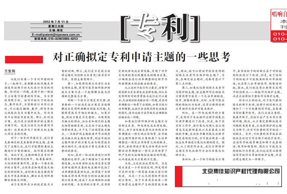 法律聲明 Unitalen Mail Box ?2016 Unitalen Attorneys at Law 版權(quán)所有 集佳知識(shí)產(chǎn)權(quán)代理有限公司 京ICP備11033076號(hào) 京公網(wǎng)安備11010502020670
