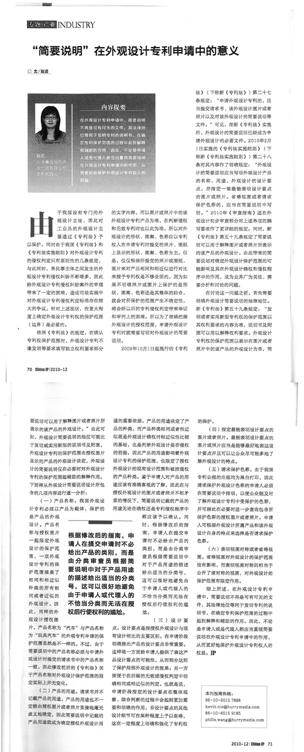 《China IP》:“簡(jiǎn)要說(shuō)明”在外觀設(shè)計(jì)專利申請(qǐng)中的意義