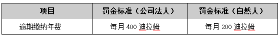 有關(guān)于年費(fèi)繳納罰金標(biāo)準(zhǔn),見(jiàn)下表: