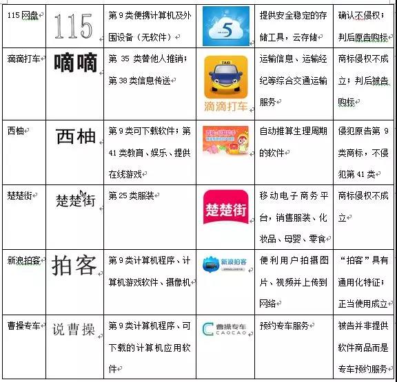2014年8月上海市第一中級(jí)人民法院受理的上海易飾嘉網(wǎng)絡(luò)科技有限公司起訴上海沃商信息科技有限公司推出、蘋果APP Store分發(fā)的“為為網(wǎng)”APP侵害其第35類、38類、42類服務(wù)上注冊(cè)的“為為網(wǎng)”商標(biāo),索賠人民幣1億元,被業(yè)內(nèi)稱為首例(實(shí)際上,立案時(shí)間晚于杭州中院“嘀嘀打車”一案)移動(dòng)互聯(lián)網(wǎng)商標(biāo)侵權(quán)糾紛,由于雙方和解或其他原因,該案并未有判決做出。同樣,2014-2015年間,杭州陌陌婚慶服務(wù)有限公司以其在45類“社交陪伴、交友服務(wù)、婚姻介紹”等服務(wù)上注冊(cè)的“陌陌”商標(biāo),先后向北京市朝陽區(qū)人民法院、北京知識(shí)產(chǎn)權(quán)法院起訴北京陌陌科技有限公司停止“陌陌”軟件的下載服務(wù)并索賠1100萬元,后兩案均以原告撤訴結(jié)案。2014年5月,杭州妙影微電子有限公司、寧波市科技園區(qū)妙影電子有限公司訴北京小桔科技有限公司“嘀嘀打車”侵犯其第9類“計(jì)算機(jī)程序(可下載軟件)”上注冊(cè)的“嘀嘀”商標(biāo),索賠經(jīng)濟(jì)損失人民幣8000萬,2015年5月杭州市中級(jí)人民法院開庭審理了此案,2016年5月原告以適當(dāng)價(jià)格(據(jù)傳為人民幣300萬元)將其注冊(cè)商標(biāo)一并轉(zhuǎn)讓給被告后,原告撤訴。2016年6月北京博天恒業(yè)廣告有限公司向北京市西城區(qū)人民法院起訴稱,北京字節(jié)跳動(dòng)科技有限公司、北京字節(jié)跳動(dòng)網(wǎng)絡(luò)技術(shù)有限公司手機(jī)端“今日頭條”APP的名稱、圖標(biāo)以及PC端“頭條網(wǎng)站”侵犯其在第35類“廣告宣傳、廣告?zhèn)鞑ァ鄙虾藴?zhǔn)注冊(cè)的“頭條”商標(biāo),要求停止侵權(quán)、消除影響,并索賠高達(dá)人民幣1億元的經(jīng)濟(jì)損失,2016年11月,原告單方撤訴[2]。目前,涉及APP的商標(biāo)侵權(quán)糾紛案件,可資借鑒的判例主要有2014年1月東莞市中級(jí)人民法院審理的“115網(wǎng)盤”一案[3],2015年2月北京市海淀區(qū)人民法院審理的“滴滴打車”一案[4],2015年12月北京知識(shí)產(chǎn)權(quán)法院審理的“西柚”一案[5],2016年8月北京市海淀區(qū)人民法院審理的“楚楚街”一案[6],2016年9月北京市高級(jí)人民法院再審結(jié)案的“新浪拍客”一案[7],2017年4月杭州濱江區(qū)法院一審的“曹操專車”一案;而杭州中院雖未就“嘀嘀打車”一案做出判決,但主審法官在其文章中[8]公開了該案的審理思路,同樣具有重要的參考價(jià)值。