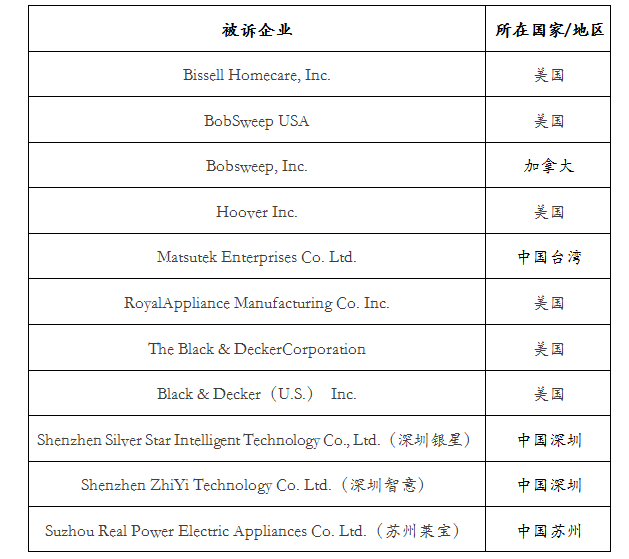 2017年4月18日,美國掃地機(jī)器人公司iRobot先后向美國國際貿(mào)易委員會(ITC)提起了“337調(diào)查”申請,指控包括3家中國公司在內(nèi)的共11家企業(yè)侵犯了其在美的6項專利中一項或多項權(quán)利要求,并要求有限排除令(limited exclusion order)及停止侵權(quán)(cease and desist order)。
