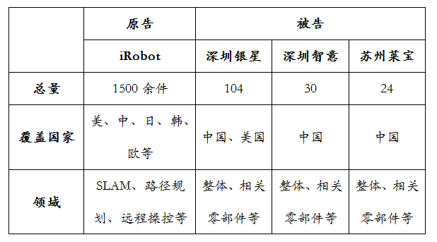將本案涉及的原告及被告(中國企業(yè))的專利情況進(jìn)行分析,不難看出雙方實力的巨大差距,iRobot作為全球第一家上市的家用機(jī)器人研發(fā)、生產(chǎn)企業(yè),其在機(jī)器人領(lǐng)域進(jìn)行了多年的深耕,積累了大量的專利申請,通過較為嚴(yán)密的專利組合,形成了較為完善的專利布局。