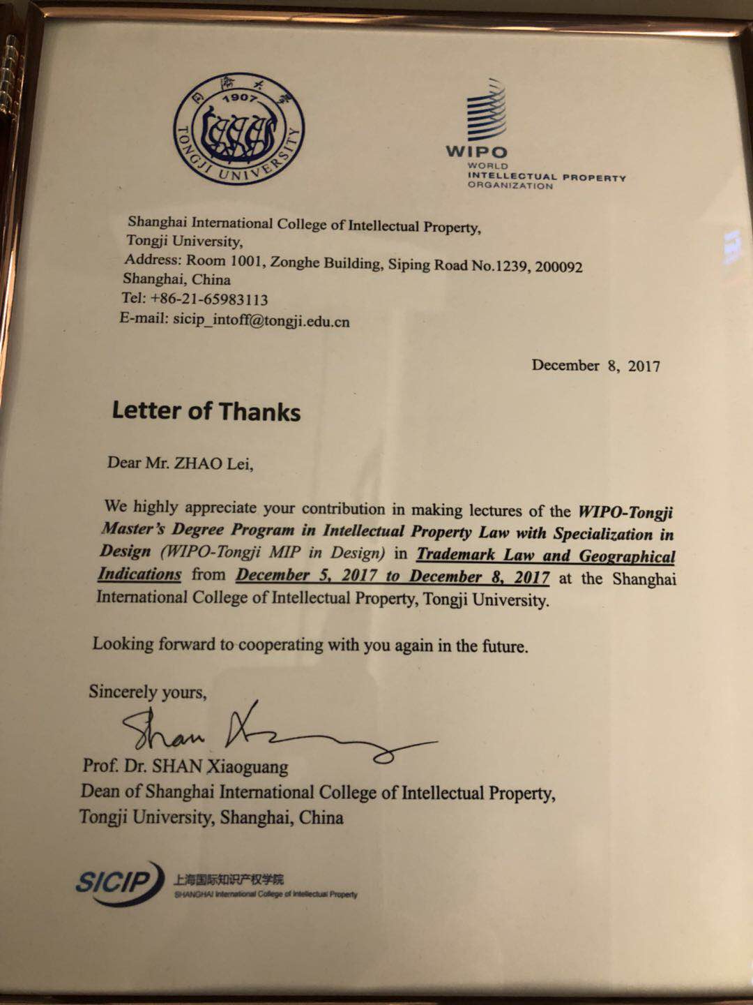 2017年12月5日到8日,集佳合伙人趙雷律師應(yīng)邀前往上海,受聘兼職教授為首屆上海國際知識產(chǎn)權(quán)學(xué)院的2017屆新生進(jìn)行授課講學(xué)。上海國際知識產(chǎn)權(quán)學(xué)院成立于同濟(jì)大學(xué),是世界知識產(chǎn)權(quán)組織第一次同中國高校攜手合作,為培養(yǎng)知識產(chǎn)權(quán)國際化人才開展的世界知識產(chǎn)權(quán)組織—同濟(jì)大學(xué)聯(lián)合培養(yǎng)知識產(chǎn)權(quán)法碩士項(xiàng)目。本屆新生匯集了包含中國在內(nèi)的21個(gè)國家的學(xué)生,涵蓋了非洲、歐洲、拉美和亞洲的多個(gè)國家和地區(qū),其中一部分是其所在國家商標(biāo)局、版權(quán)局的現(xiàn)任審查員、仲裁員、律師。