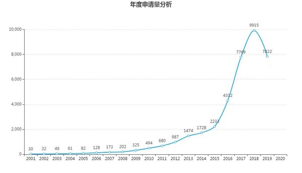經(jīng)過檢索,排除處于無效或撤回等狀態(tài)的專利,篩選當前法律狀態(tài)為有權(quán)和審中(即處于授權(quán)、部分無效、權(quán)利恢復、實審或公開的狀態(tài))的專利進行分析,這部分的總量為38785件。