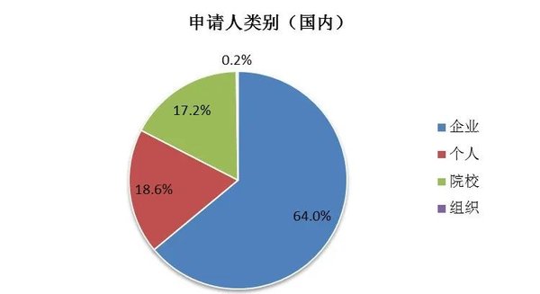分類別看,如圖4,企業(yè)占據(jù)著該領(lǐng)域技術(shù)創(chuàng)新的主導地位(64.0%),而院校和個人申請人的體量較少且相當(均為18%左右)。與這種分布不同,在圖3中,前二十位申請人中有11個院校、8個公司和1個個人,前十位申請人中則有7個院校和3個公司。可知有限的院校貢獻了一部分的申請量,而申請量的大部分則分布在廣大的企業(yè)中。結(jié)合圖3,在企業(yè)類別中,以中國石油化工股份有限公司(111件)、荊門市格林美新材料有限公司(96件)和中國恩菲工程技術(shù)有限公司(94件)的申請量為多,但是同時也看出,企業(yè)之間的申請量差距并不大,進一步表明固廢領(lǐng)域的技術(shù)創(chuàng)新在申請人維度上分布地比較分散。