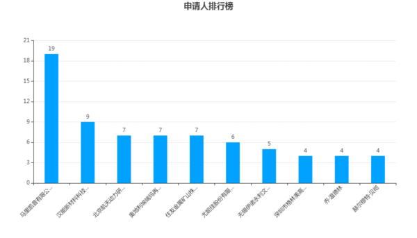 由圖9可見,在5星專利的申請人排行中,國外申請人占據(jù)前十位中的六位。其中芬蘭的馬里凱普公司更是獨占鰲頭,結(jié)合上文中該公司的申請總量,可知該公司在固廢的細分領(lǐng)域(垃圾回收)中的技術(shù)研發(fā)極具競爭力。此外注意到,漢能新材料科技有限公司、北京航天動力研究所、奧地利埃瑞瑪再生工程機械設(shè)備有限公司在相應的細分領(lǐng)域也均有不俗的技術(shù)積累。