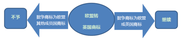 小結(jié):對(duì)于轉(zhuǎn)化后的英國(guó)商標(biāo),若據(jù)爭(zhēng)商標(biāo)是英國(guó)或者歐盟商標(biāo)的,則案件繼續(xù)審理;若基于其他成員國(guó)的在先權(quán)利的,則將不予審理。此外,對(duì)于基于英國(guó)商標(biāo)提出的歐盟異議和無(wú)效,歐盟將不予審理。