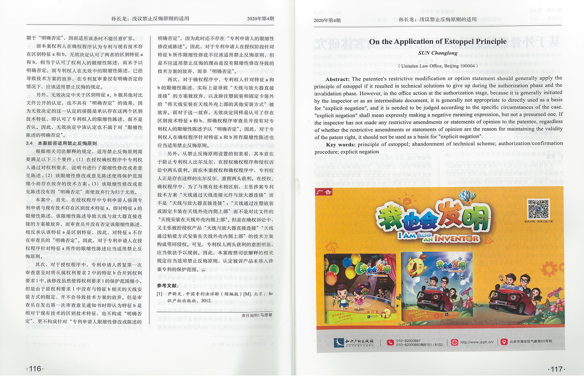集佳文章《淺議禁止反悔原則的適用——從J某與LF公司專利侵權案看禁止反悔之明確否定》在《中國發明與專利》發表