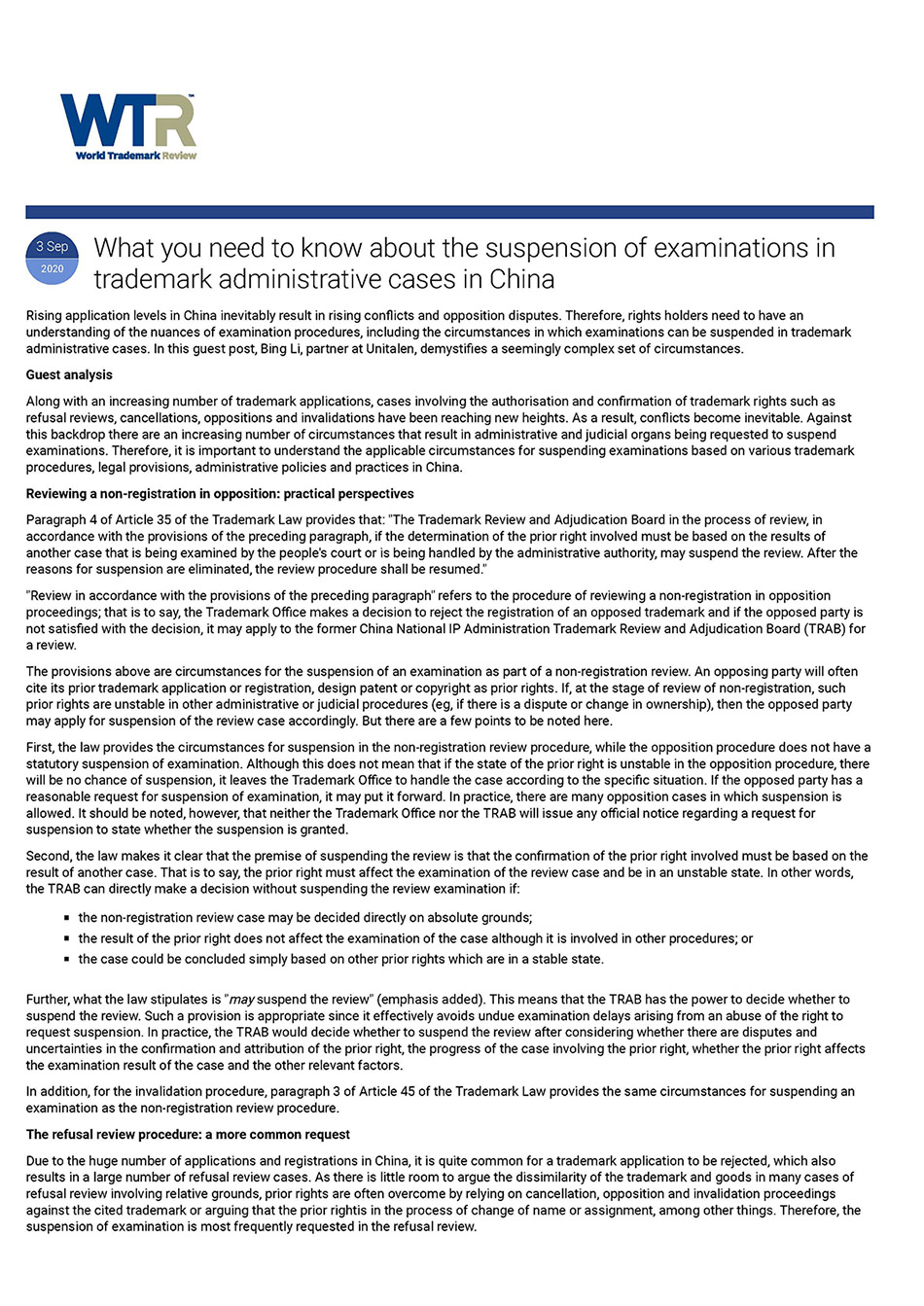 法律聲明 Unitalen Mail Box ?2016 Unitalen Attorneys at Law 版權(quán)所有 集佳知識產(chǎn)權(quán)代理有限公司 京ICP備11033076號 京公網(wǎng)安備11010502020670