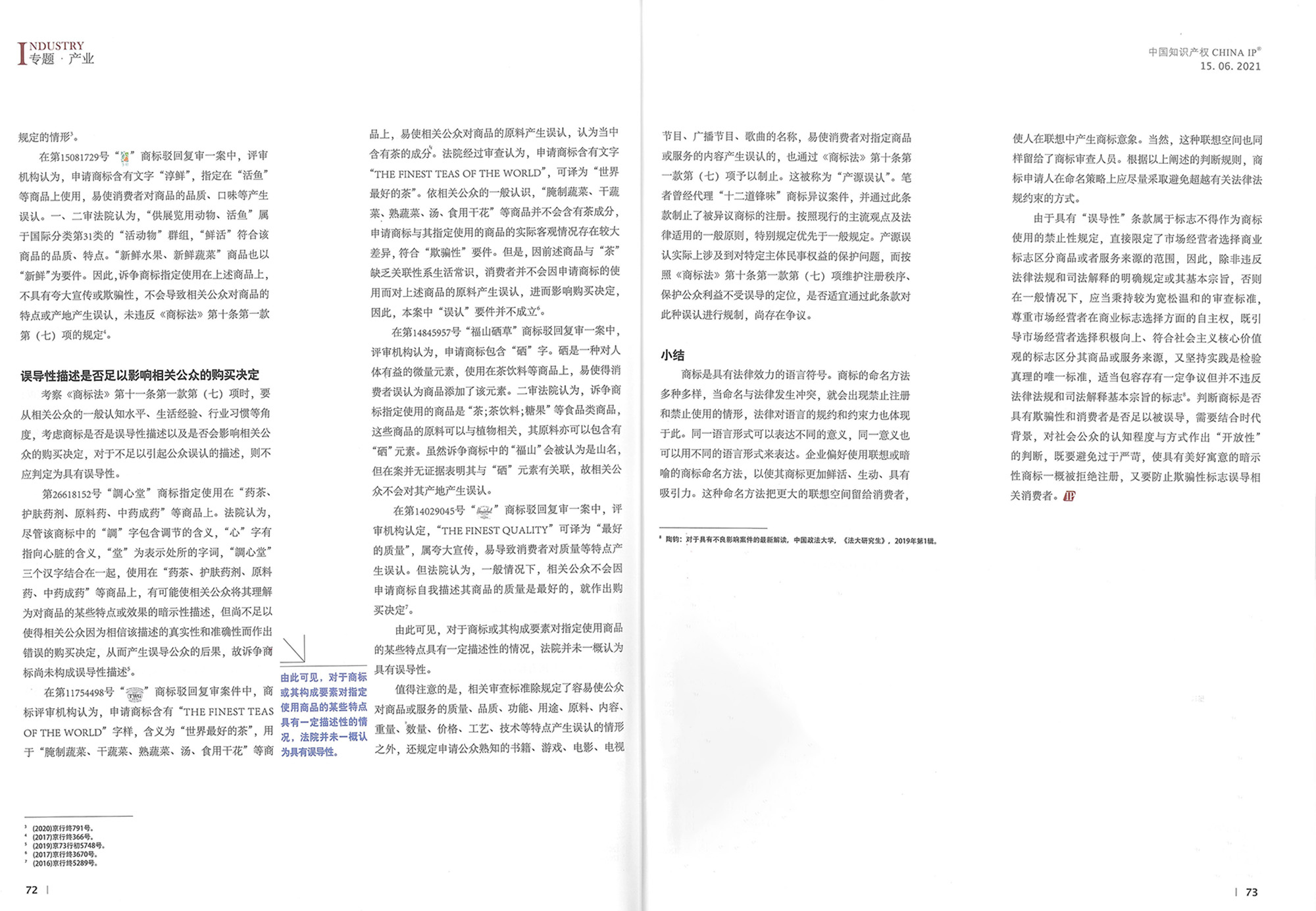 集佳文章《對于商標“欺騙性”和“誤認”條款的解讀——<商標法>第十條第一款第(七)項適用淺析》