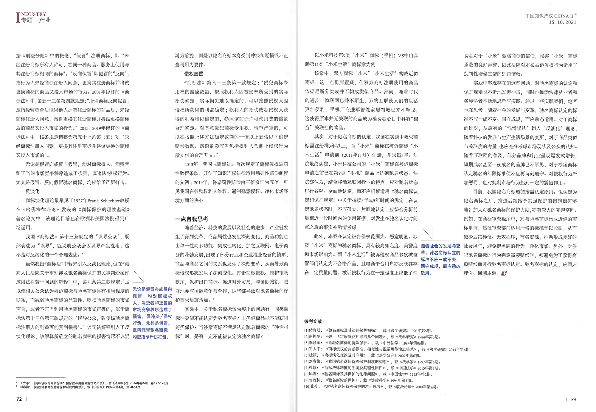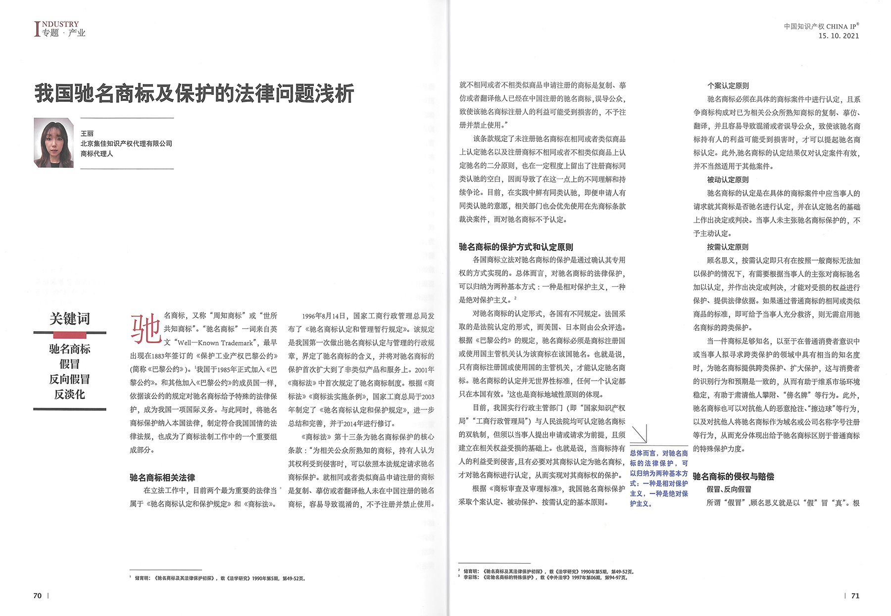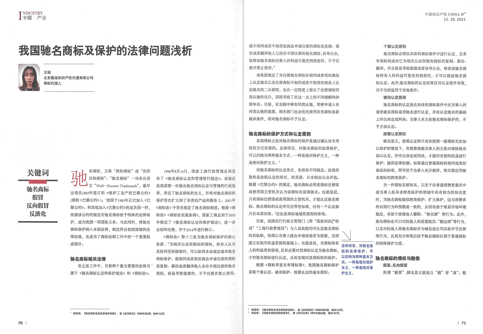 集佳文章《我國(guó)馳名商標(biāo)及保護(hù)的法律問(wèn)題淺析》在《中國(guó)知識(shí)產(chǎn)權(quán)》發(fā)表