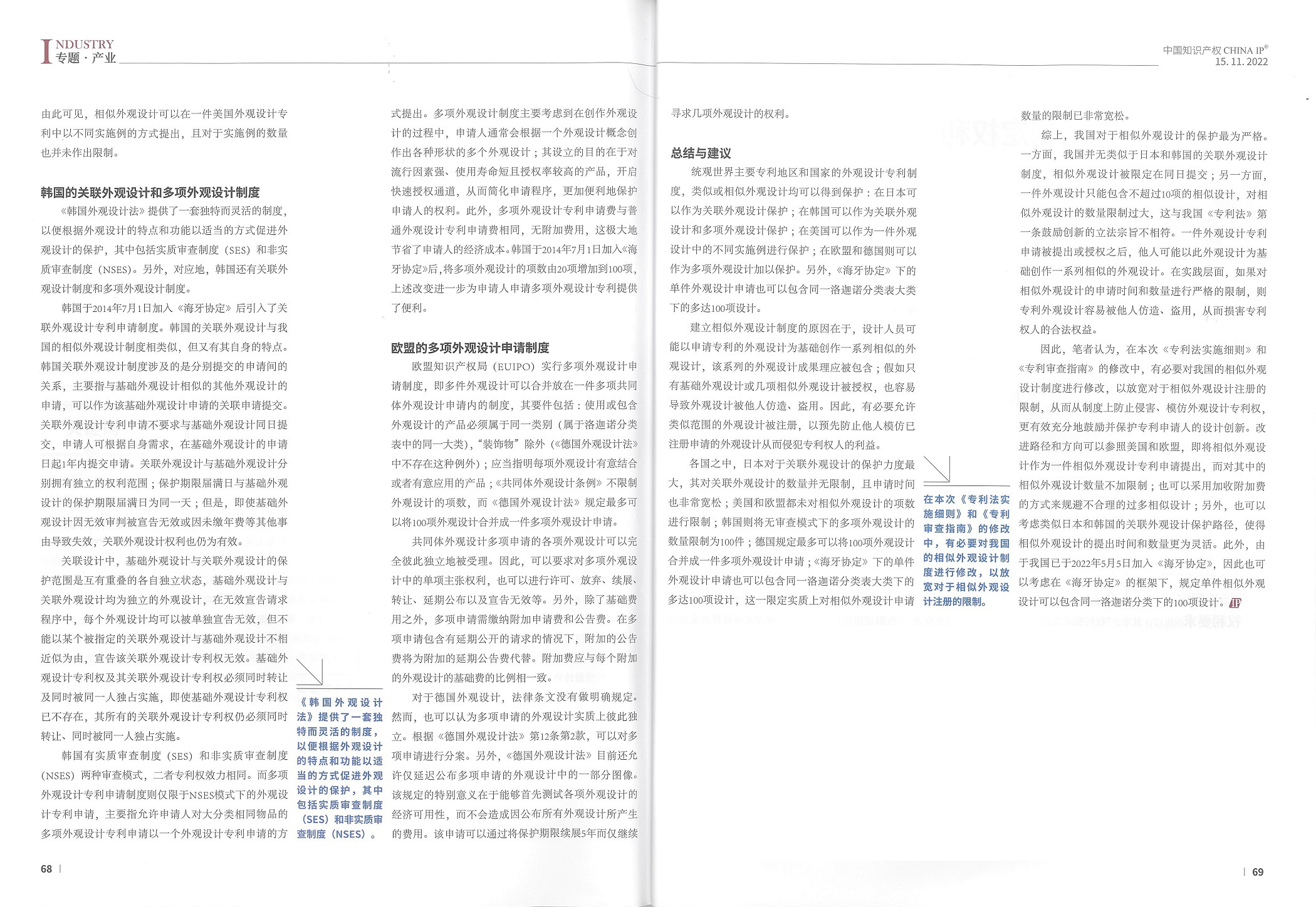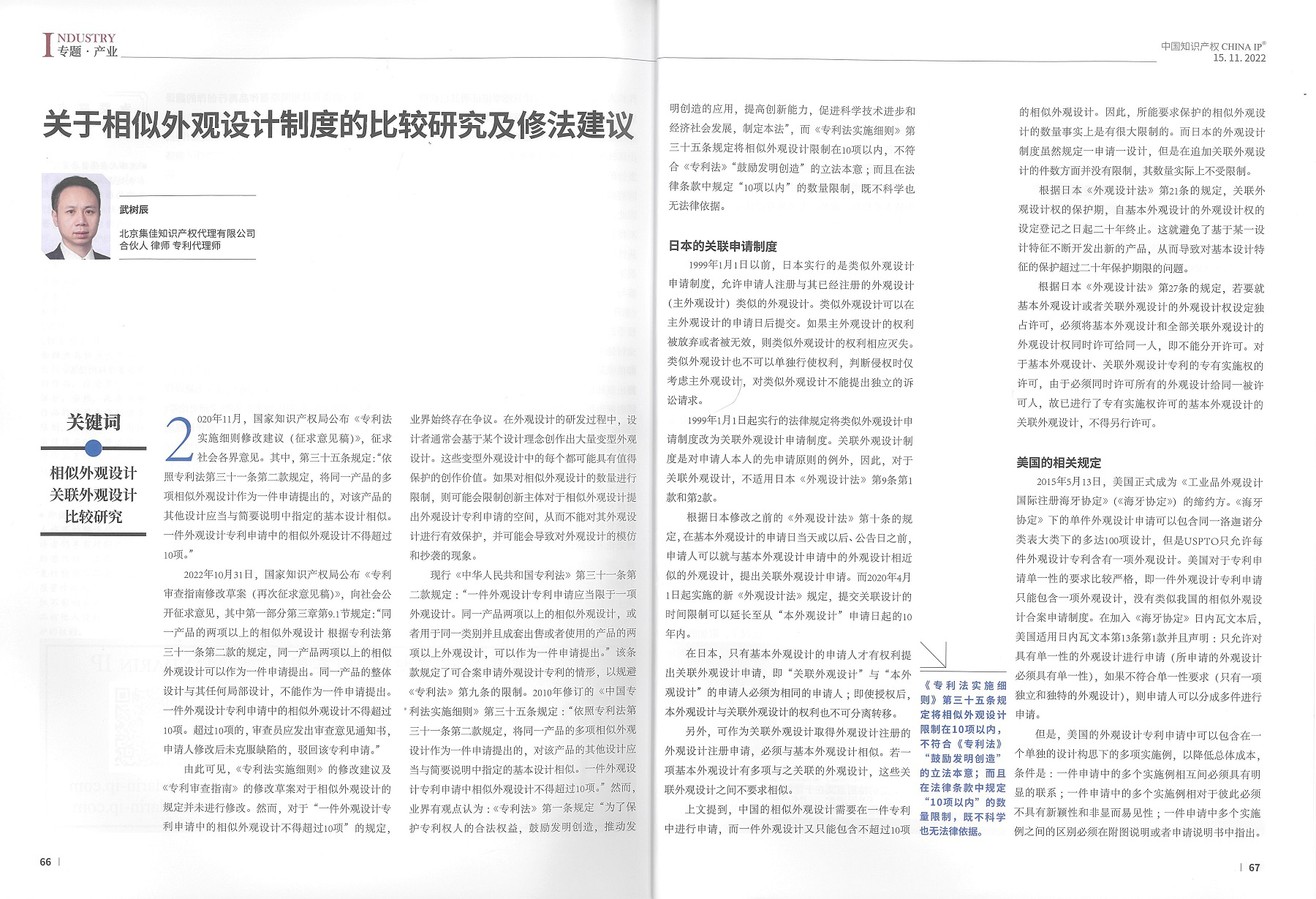 集佳文章《關(guān)于相似外觀設(shè)計(jì)制度的比較研究及修法建議》在《中國知識(shí)產(chǎn)權(quán)》發(fā)表