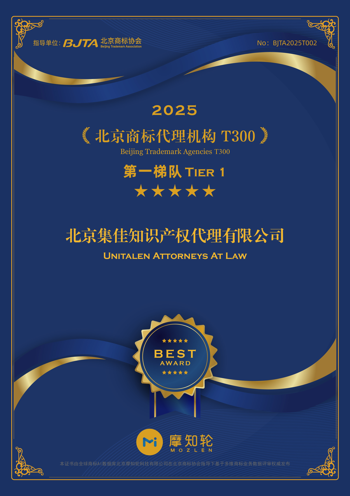 此次入選T300第一梯隊,代表北京商標協會與業界對集佳過往工作成果的高度認可與鼓勵,集佳將以此為動力,繼續秉持“站在客戶的角度考慮每一個問題”“全身心地關注客戶的每一個細節”的服務理念,不斷提升專業能力與服務水平,充分發揮專業優勢,為商標行業的發展不斷努力,為推動我國商標品牌戰略的實施做出積極貢獻。