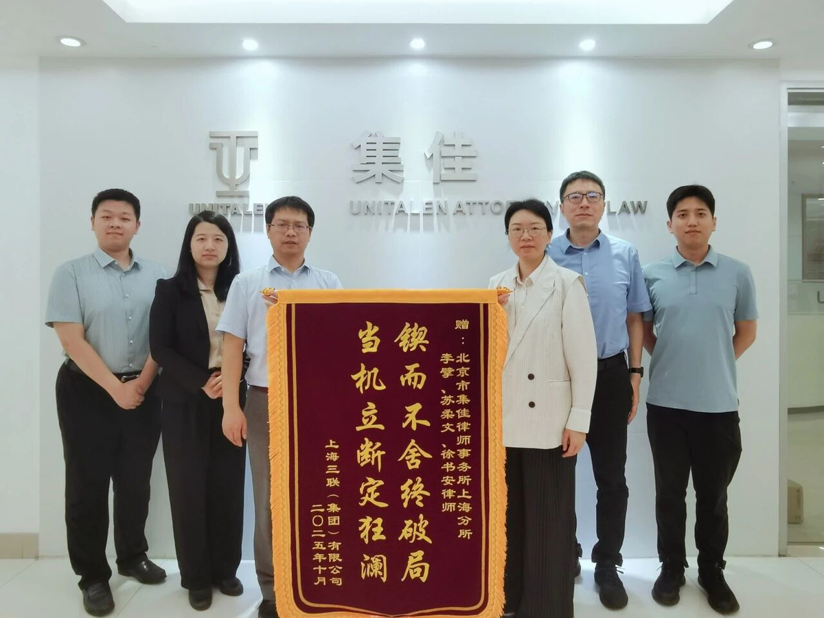 近日,集佳上海分所代理的上海三聯(lián)(集團)有限公司(以下簡稱“上海三聯(lián)集團”)與上海某公司、大豐某公司等侵害商標(biāo)權(quán)及不正當(dāng)競爭糾紛案的執(zhí)行取得重大進展,上海三聯(lián)集團代表專程蒞臨集佳上海分所,送來表揚錦旗。